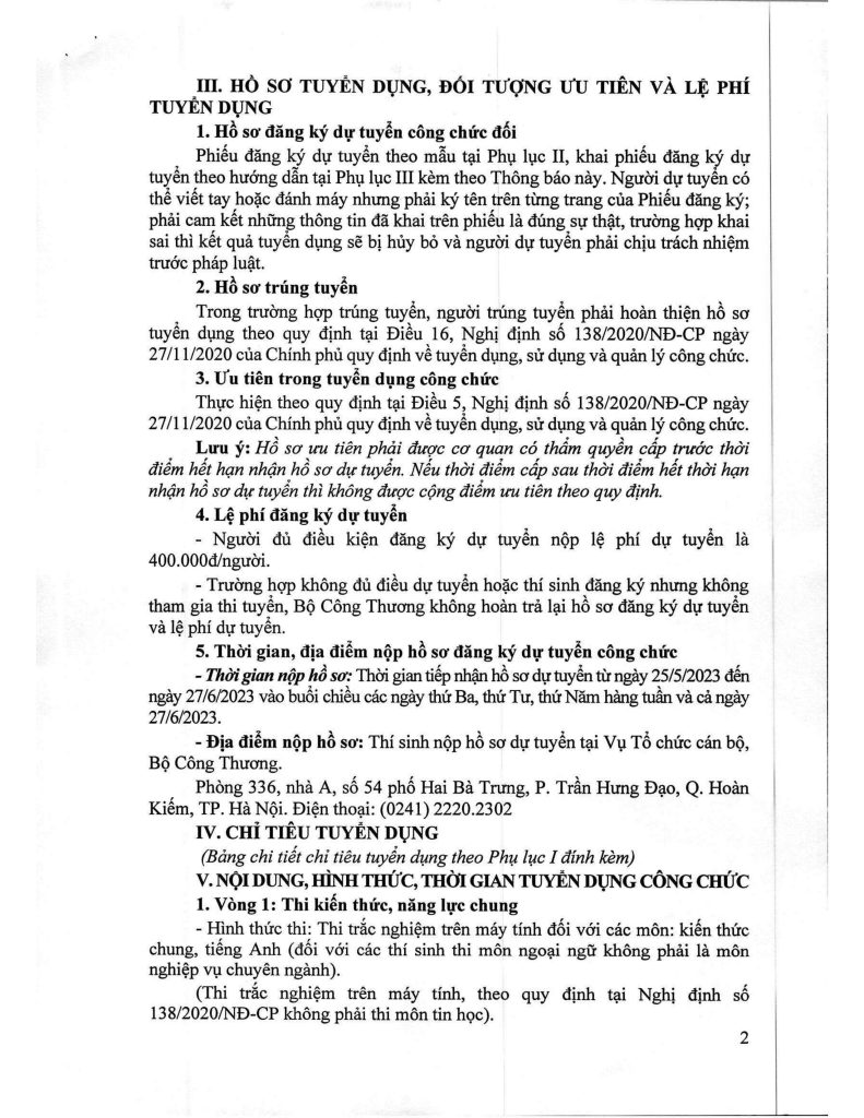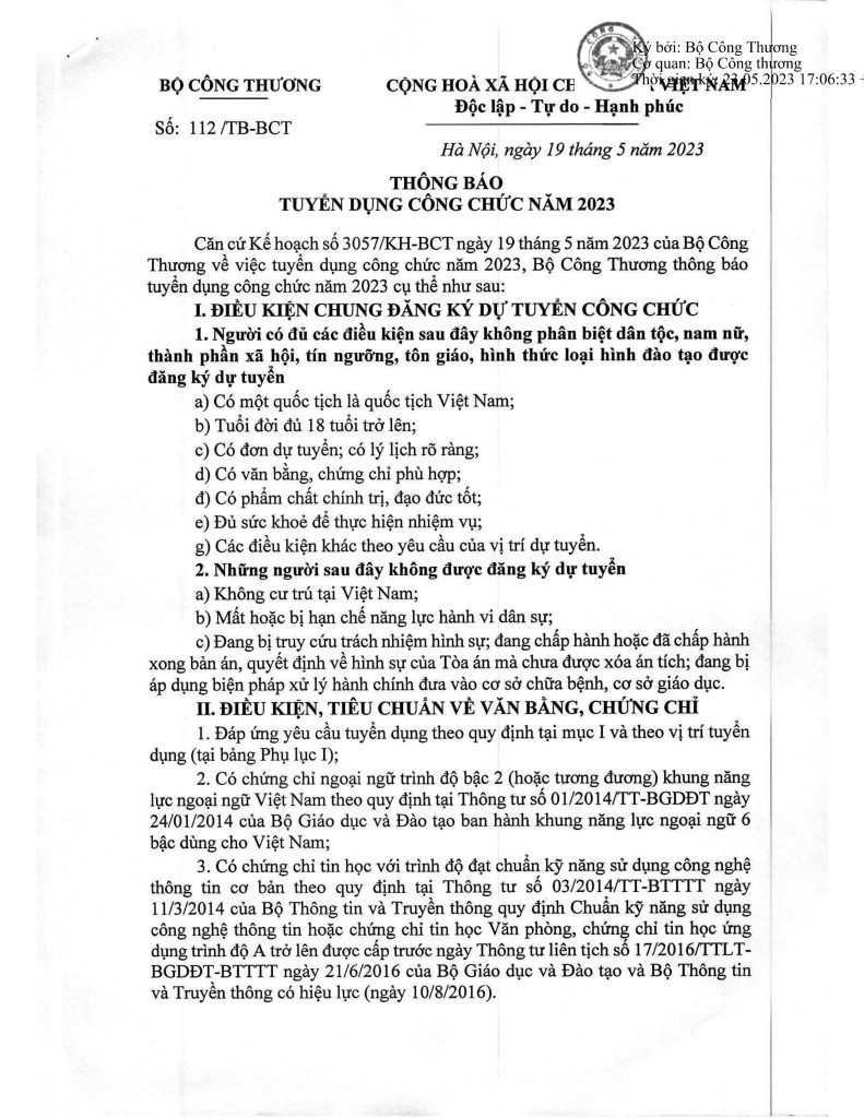 Đọc toàn văn thông báo Bộ Công Thương tuyển dụng công chức 2023:
